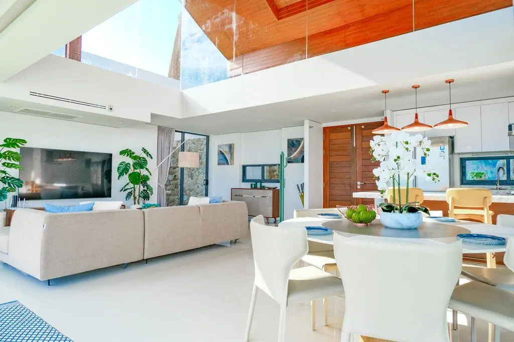 When exploring Koh Samui villas for sale, this 3-bedroom property distinguishes itself through its harmonious blend of design, functionality, and location. The interior layout has been carefully considered to support both everyday living and holiday comfort, while the generous use of glass captures uninterrupted sea views from key areas of the home. This creates an inviting atmosphere that appeals equally to private homeowners and rental guests.